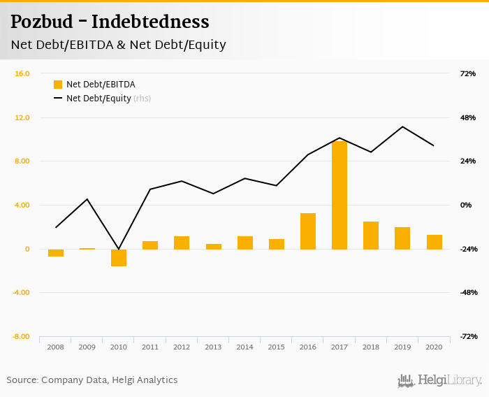 Pozbud's net debt stood at PLN 71.6 mil and accounted for 32.3% of equity at the end of 2020. The ratio is down 10.5 pp compared to the previous year.