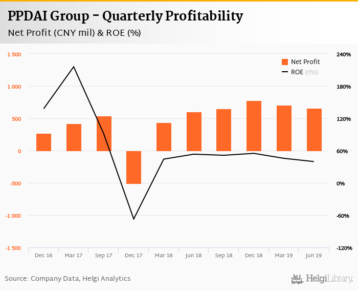 PPDAI Group made a net profit of CNY 661 mil in the second quarter of 2019, up 8.89% when compared to the same period of last year. This implies a return on equity of 39.7%.