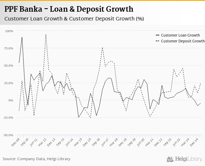 At the end of 2025-03-31, PPF Banka's loans accounted for 19.4% of total deposits and 16.3% of total assets.