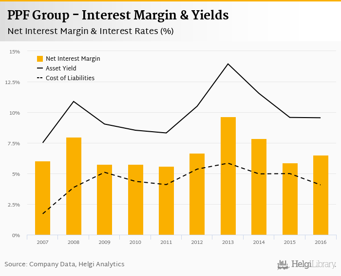 Comparing PPF Group with its closest peers, Ceska Sporitelna operated in 2016 with a net interest margin of 2.52% in 2016, CSOB reached 2.18% and Komercni Banka some 2.32%.