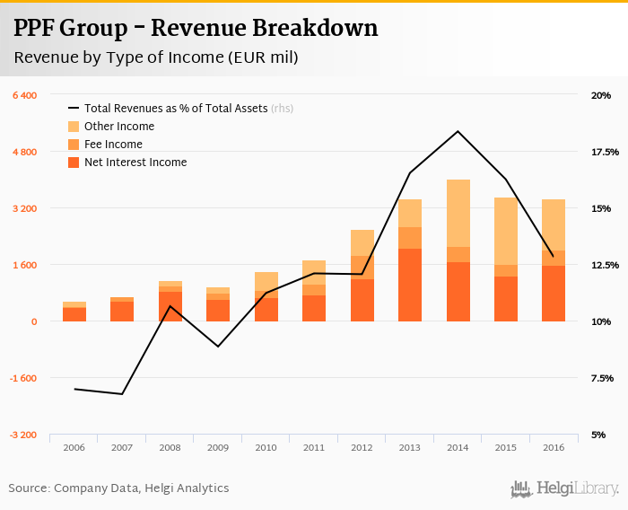 PPF Group generated total banking revenues of EUR 3,463 mil in 2016, down 1.34% compared to the previous year.