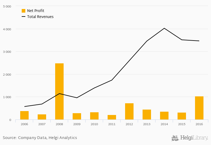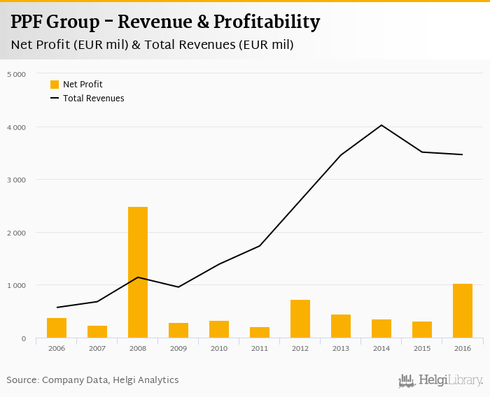 PPF Group made a net profit of EUR 1,031 mil under revenues of EUR 3,463 mil in 2016, up 227% and -1.34% respectively compared to the previous year.