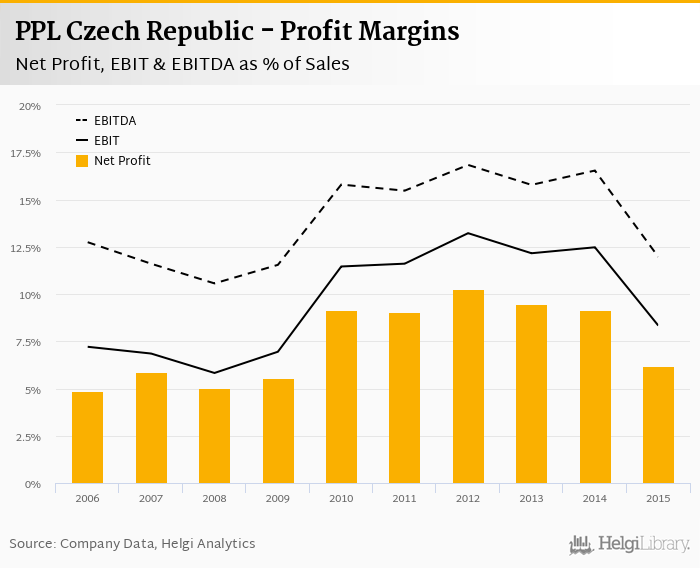 PPL Czech Republic made a net profit of CZK 146 mil with revenues of CZK 2,366 mil in 2015, down by 29.3% and up by 4.91%, respectively, compared to the previous year.