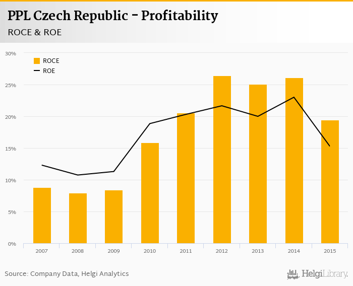 As far as PPL Czech Republic's peers are concerned, Geis Parcel Czech Republic generated ROE of 14.5% and ROCE of 21.3% in 2015. Ceska Posta's profitability reached 2.31% and 10.2%, respectively. DHL Express Czech Republic operated with 30.2% and 22.8% returns in 2015.