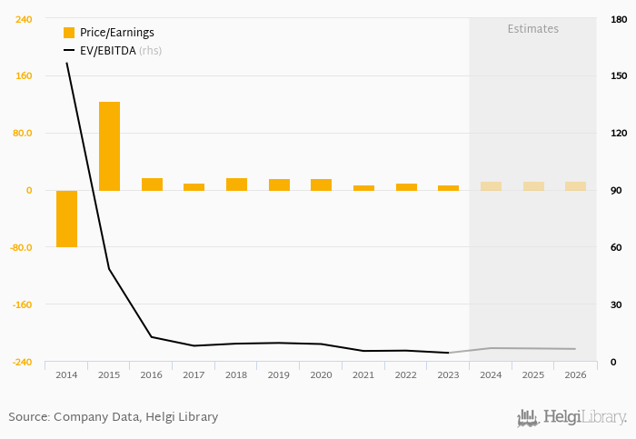 In terms of EV/EBITDA, stock traded at 4.20x at the end of 2023. Since 2018, stock has traded between 4.20x and 9.40x with an average of 6.60x.