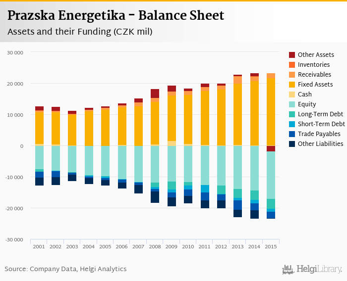 Prazska Energetika's total assets reached CZK 21,566 mil at the end of 2015, down 7.41% compared to the previous year.