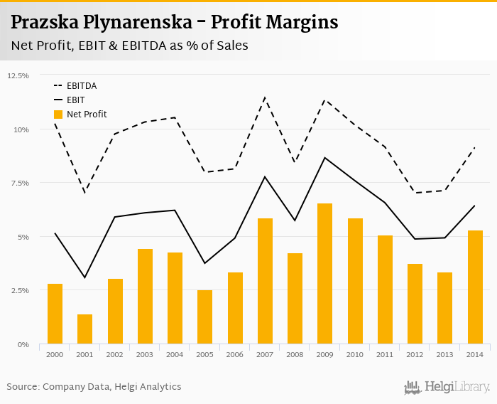 Prazska Plynarenska made a net profit of CZK 729 mil with revenues of CZK 13,751 mil in 2014, up by 30% and down by 18.4%, respectively, compared to the previous year.