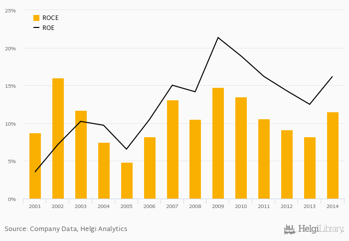 The result implies a return on equity of 16.2% and a return on invested capital of 11.5% in 2014. That is compared to an average of 15.6% and 10.6% over the last five years.