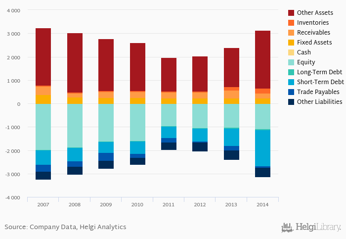 Net debt against equity is up 1.16 pp from five years ago (0.306). The ratio against EBITDA increased from 0.853x seen in 2009 to 2.38x.