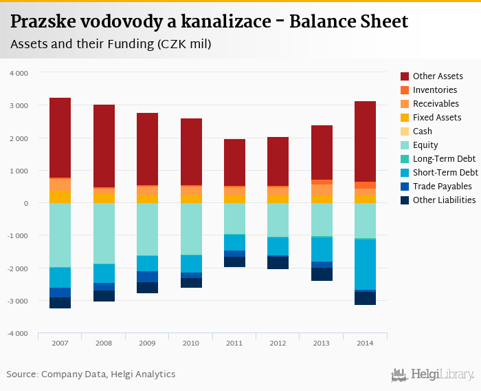 Prazske vodovody a kanalizace's total assets reached CZK 3,140 mil at the end of 2014, up 30.8% compared to the previous year.