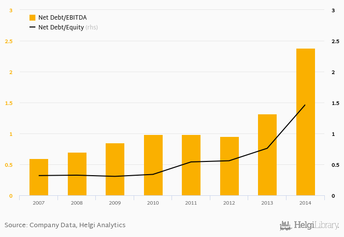 Historically, the firm’s net debt to equity reached a high of 1.47 in 2014 and a low of 0.306 in 2009 between 2007 and 2014. The average for the last five years was 0.733%.
