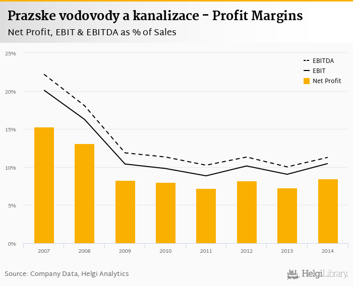 Prazske vodovody a kanalizace made a net profit of CZK 500 mil with revenues of CZK 5,900 mil in 2014, up by 16.3% and up by 0.278%, respectively, compared to the previous year.