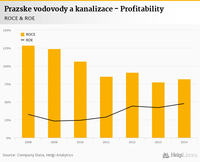 As far as Prazske vodovody a kanalizace's peers are concerned, Prazska Energetika generated ROE of 17.2% and ROCE of 12.2% in 2014. Prazska Plynarenska's profitability reached 16.2% and 11.5%, respectively. Severoceske vodovody a kanalizace operated with 19.2% and 29.0% returns in 2014.