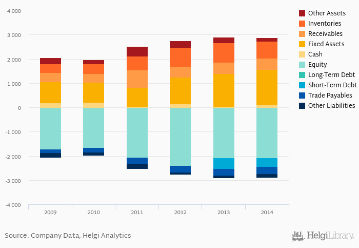 Net debt against equity is up 0.239 pp from five years ago (-0.114). The ratio against EBITDA increased from -0.558x seen in 2009 to 0.442x.