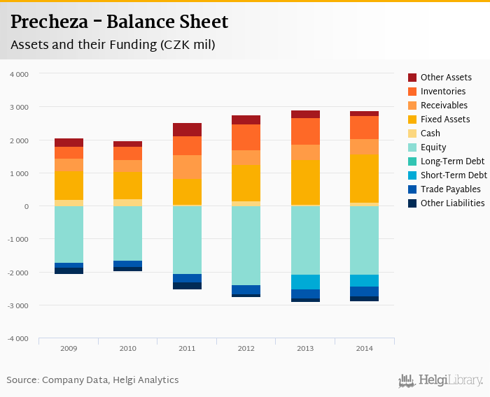 Precheza's total assets reached CZK 2,868 mil at the end of 2014, down 1.27% compared to the previous year.