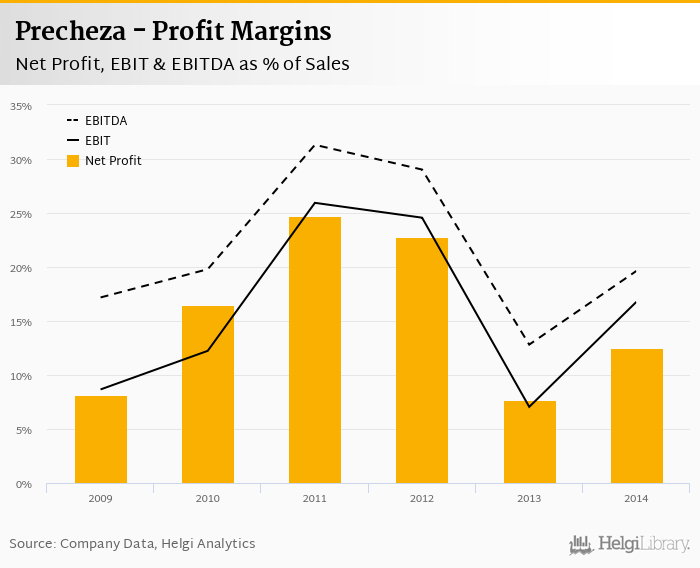 Precheza made a net profit of CZK 374 mil with revenues of CZK 2,991 mil in 2014, up by 77.3% and up by 9.51%, respectively, compared to the previous year.