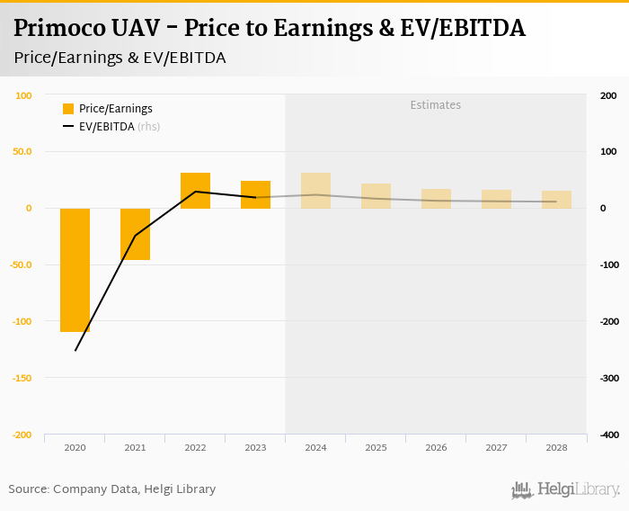 Primoco UAV stock traded at CZK 885 per share at the end 2023 translating into a market capitalization of USD 187 mil.
