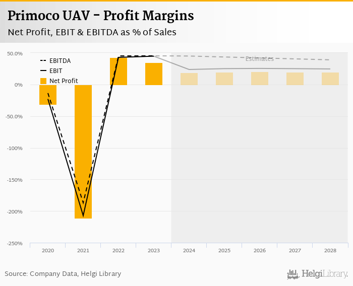 Primoco UAV made a net profit of CZK 171 mil with revenues of CZK 494 mil in 2023, up by 176% and up by 239%, respectively, compared to the previous year.