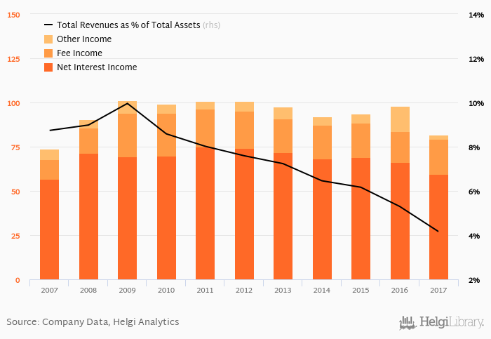 Bank's total revenues accounted for 4.16% total assets in 2017, down from 5.30% a year earlier.