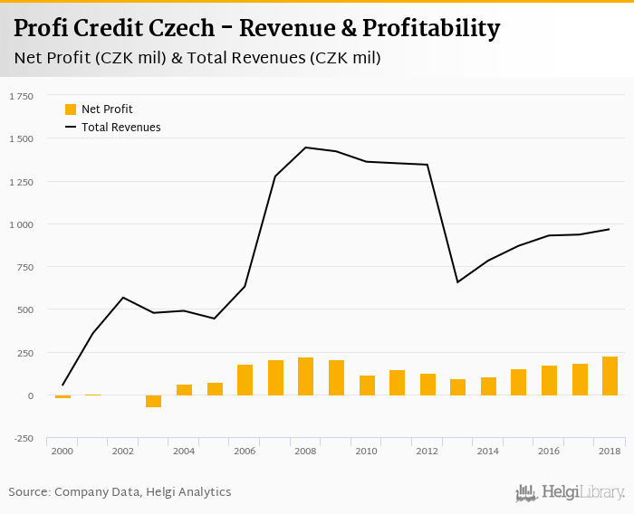 Profi Credit Czech made a net profit of CZK 226 mil under revenues of CZK 965 mil in 2018, up 21.7% and 3.38% respectively compared to the previous year.