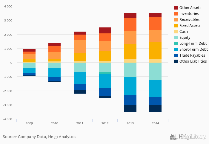 Net debt against equity is up 0.019 pp from five years ago (0.741). The ratio against EBITDA decreased from 9.49x seen in 2009 to 2.90x.