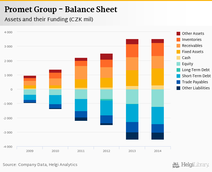 Promet Group's total assets reached CZK 3,514 mil at the end of 2014, down 0.275% compared to the previous year.