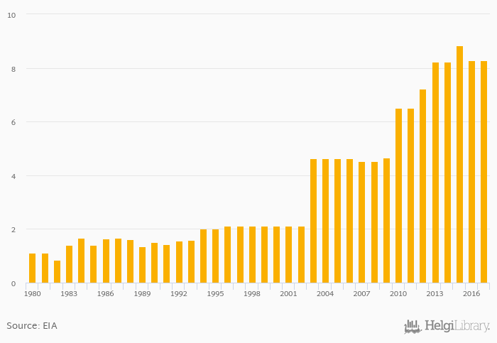Proved reserves of crude oil rose 0% to 8.27 bil barrels in Ecuador in 2017, according to EIA.
