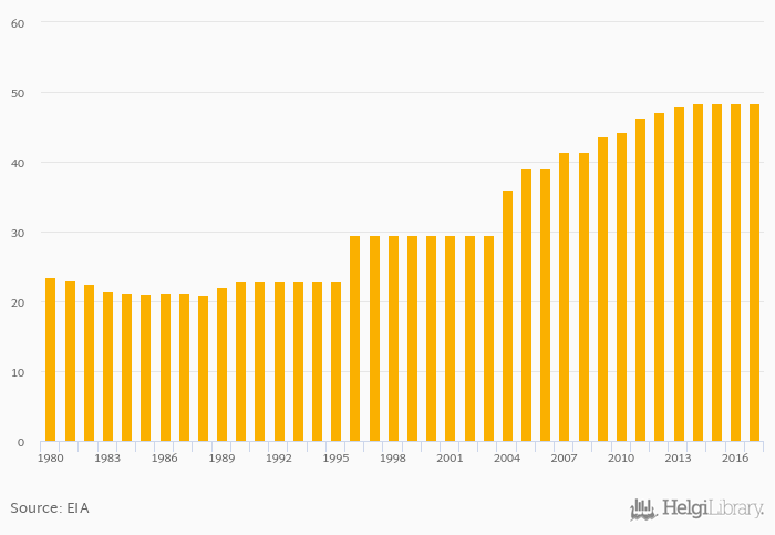 Proved reserves of crude oil rose 0% to 48.4 bil barrels in Libya in 2017, according to EIA.