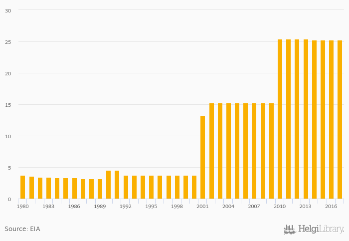 Proved reserves of crude oil rose 0% to 25.2 bil barrels in Qatar in 2017, according to EIA.