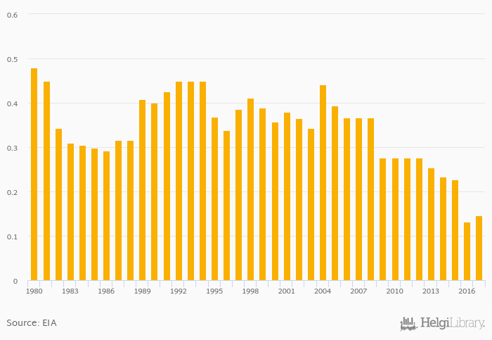 Proved reserves of crude oil rose 9.78% to 0.145 bil barrels in Germany in 2017, according to EIA.