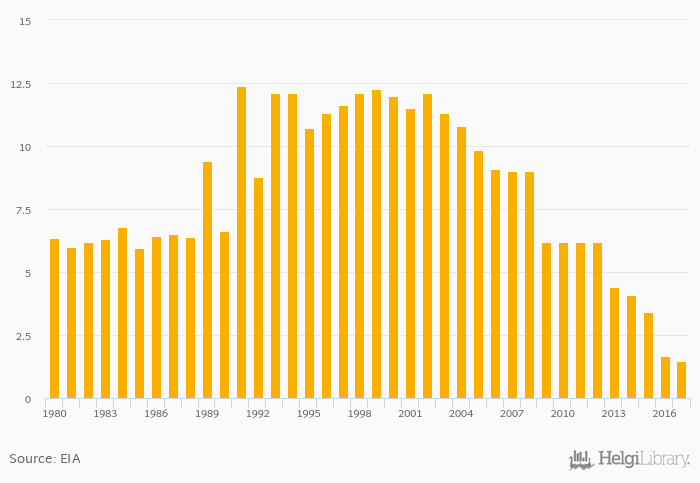 Proved reserves of natural gas fell 11.4% to 1.48 trillion cb ft in Germany in 2017, according to EIA.