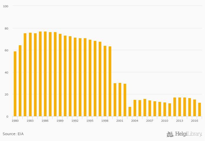 Proved reserves of natural gas fell 17.8% to 12.6 trillion cb ft in Mexico in 2017, according to EIA.