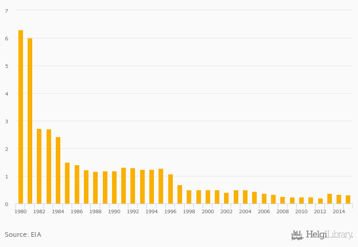 Proved reserves of natural gas fell 7.92% to 0.314 trillion cb ft in France in 2015, according to EIA.