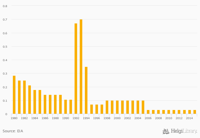 Proved reserves of natural gas rose 0% to 0.029 trillion cb ft in Albania in 2015, according to EIA.