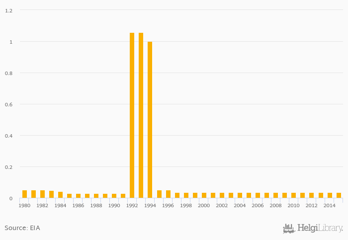 Proved reserves of natural gas rose 0% to 0.035 trillion cb ft in Dem. Republic of the Congo in 2015, according to EIA.