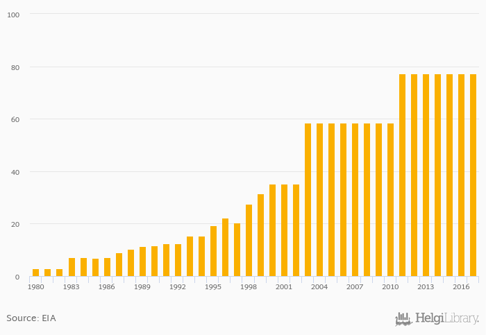 Proved reserves of natural gas rose 0% to 77.2 trillion cb ft in Egypt in 2017, according to EIA.