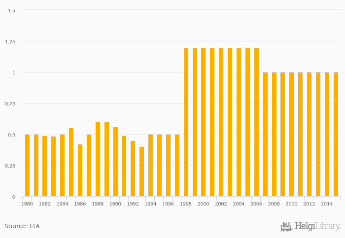 Proved reserves of natural gas rose 0% to 1.00 trillion cb ft in Gabon in 2015, according to EIA.