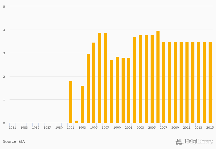 Proved reserves of natural gas rose 0% to 3.48 trillion cb ft in Philippines in 2015, according to EIA.