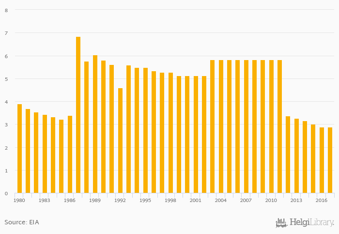 Proved reserves of natural gas rose 0% to 2.88 trillion cb ft in Poland in 2017, according to EIA.