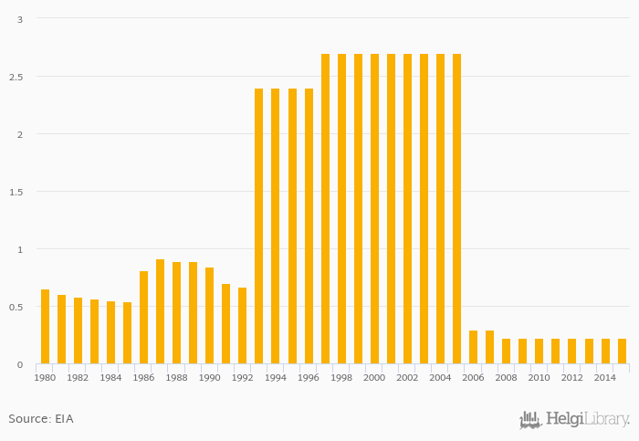 Proved reserves of natural gas rose 0% to 0.220 trillion cb ft in Taiwan in 2015, according to EIA.