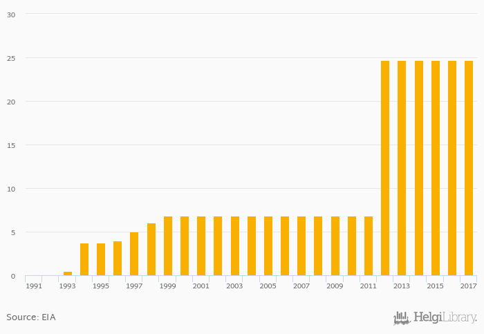 Proved reserves of natural gas rose 0% to 24.7 trillion cb ft in Vietnam in 2017, according to EIA.