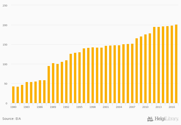 Proved reserves of natural gas rose 1.50% to 201 trillion cb ft in Venezuela in 2017, according to EIA.