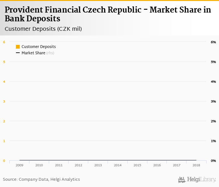 Provident Financial Czech Republic's customer deposits reached CZK 0 mil in 2018, down 0% compared to the previous year.