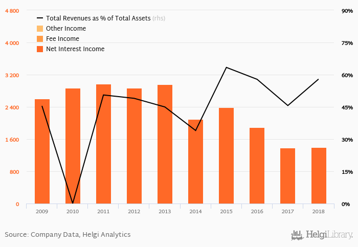Bank's total revenues accounted for 57.9% total assets in 2018, up from 45.6% a year earlier.