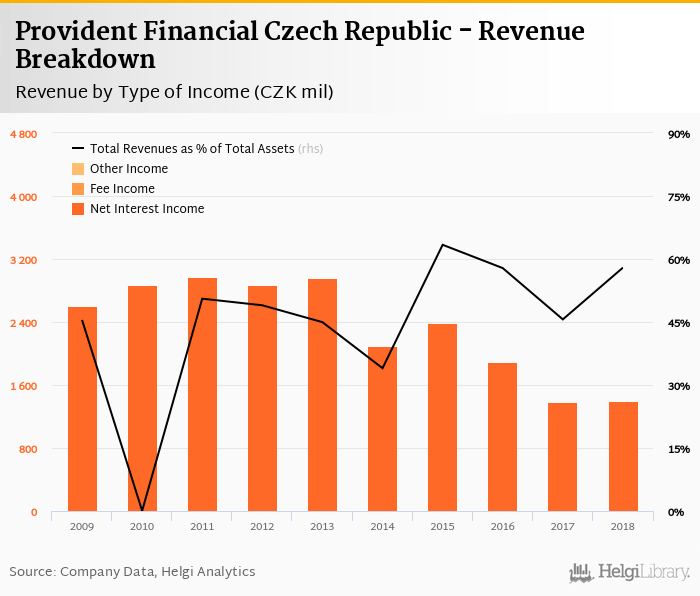 Provident Financial Czech Republic generated total banking revenues of CZK 1,395 mil in 2018, up 0.315% compared to the previous year.