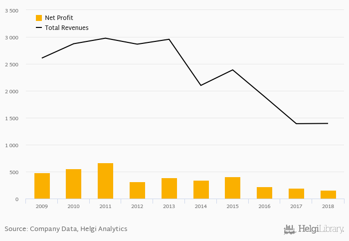 On the other hand, bank’s revenues amounted to an all time high of CZK 2,977 mil in 2011 and an all time low of CZK 1,390 mil in 2017. The average revenues in the last five years reached CZK 1,833 mil.
