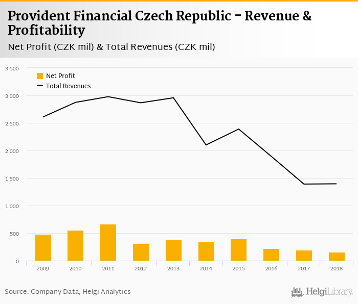 Provident Financial Czech Republic made a net profit of CZK 157 mil under revenues of CZK 1,395 mil in 2018, up -17.6% and 0.315% respectively compared to the previous year.