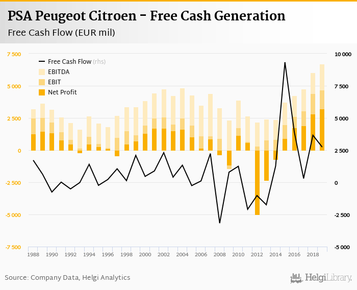 PSA Peugeot Citroen made a net profit of EUR 3,201 mil with revenues of EUR 74,731 mil in 2019, up by 13.2% and up by 0.951%, respectively, compared to the previous year. This translates into a net margin of 4.28%.