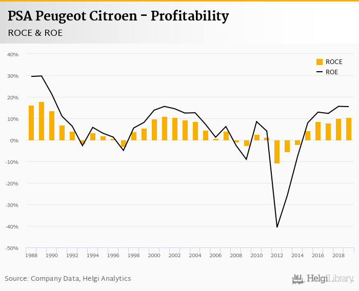 PSA Peugeot Citroen made a net profit of EUR 3,201 mil in 2019, up 13.2% compared to the previous year. Historically, between 1988 and 2019, the company's net profit reached a high of EUR 3,201 mil in 2019 and a low of EUR -5,008 mil in 2012.