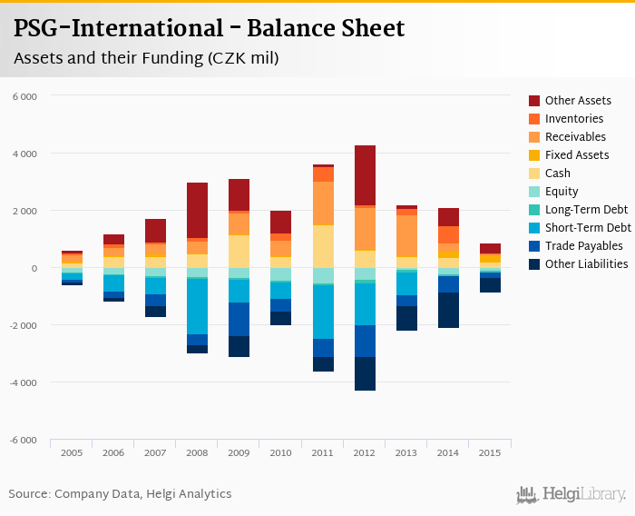 PSG-International's total assets reached CZK 859 mil at the end of 2015, down 58.8% compared to the previous year.